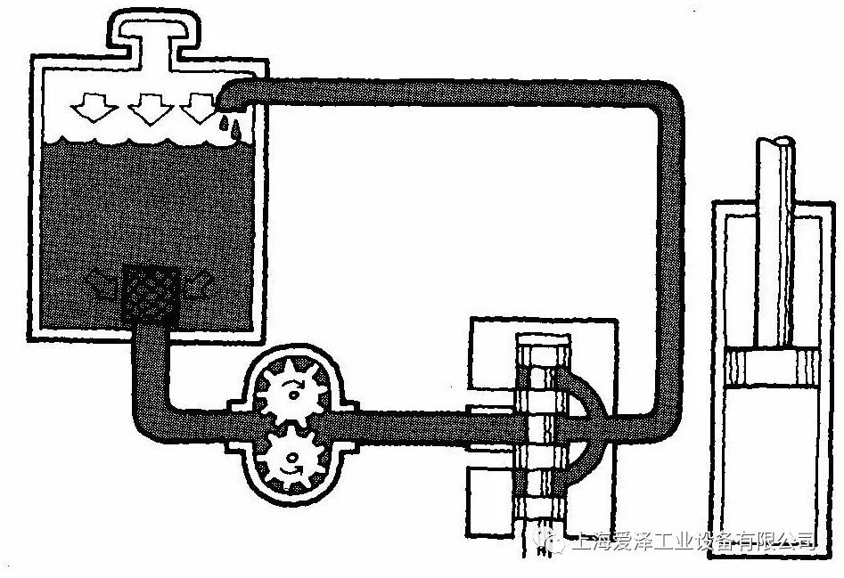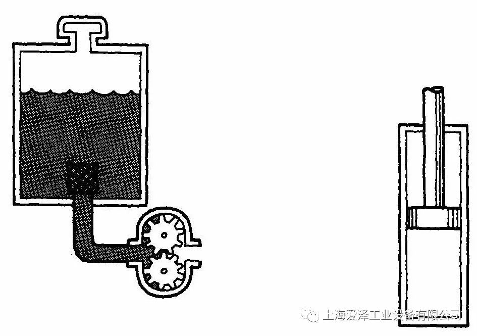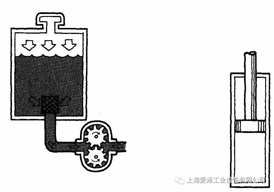 2.下一步,形成油的流動必須有泵,但是泵不能從油箱吸油。重力使油進入泵。