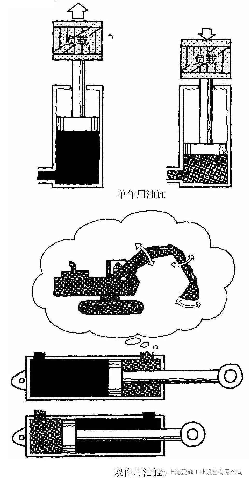 單作用油缸。受壓液體只能進入油缸一端。必須利用重力這樣的外界力將活塞推動到油缸中它原來的位置上。雙作用油缸。受壓液體可以進入油缸的任何一端,這樣活塞可以在兩個方向工作。