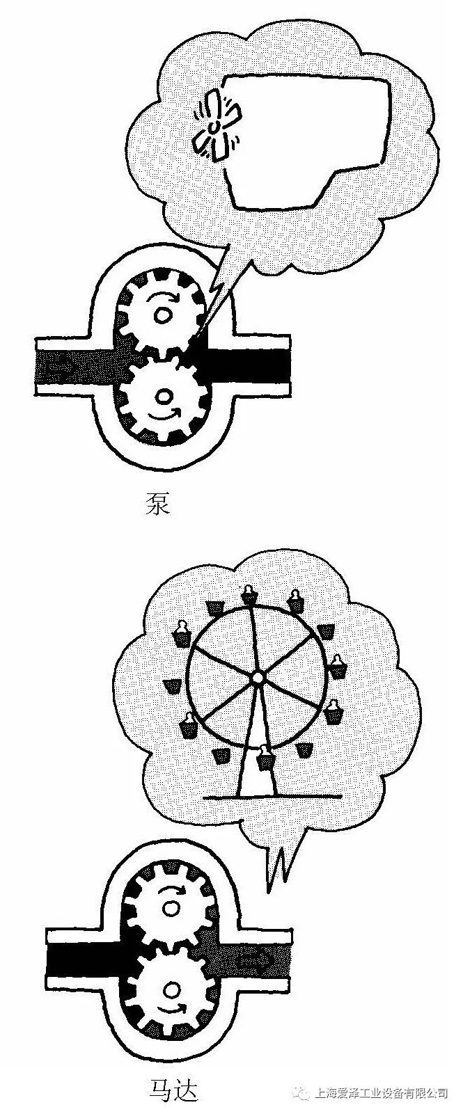 在液壓傳動中,泵和馬達共同工作。泵受到機械驅(qū)動并將液體推至馬達。