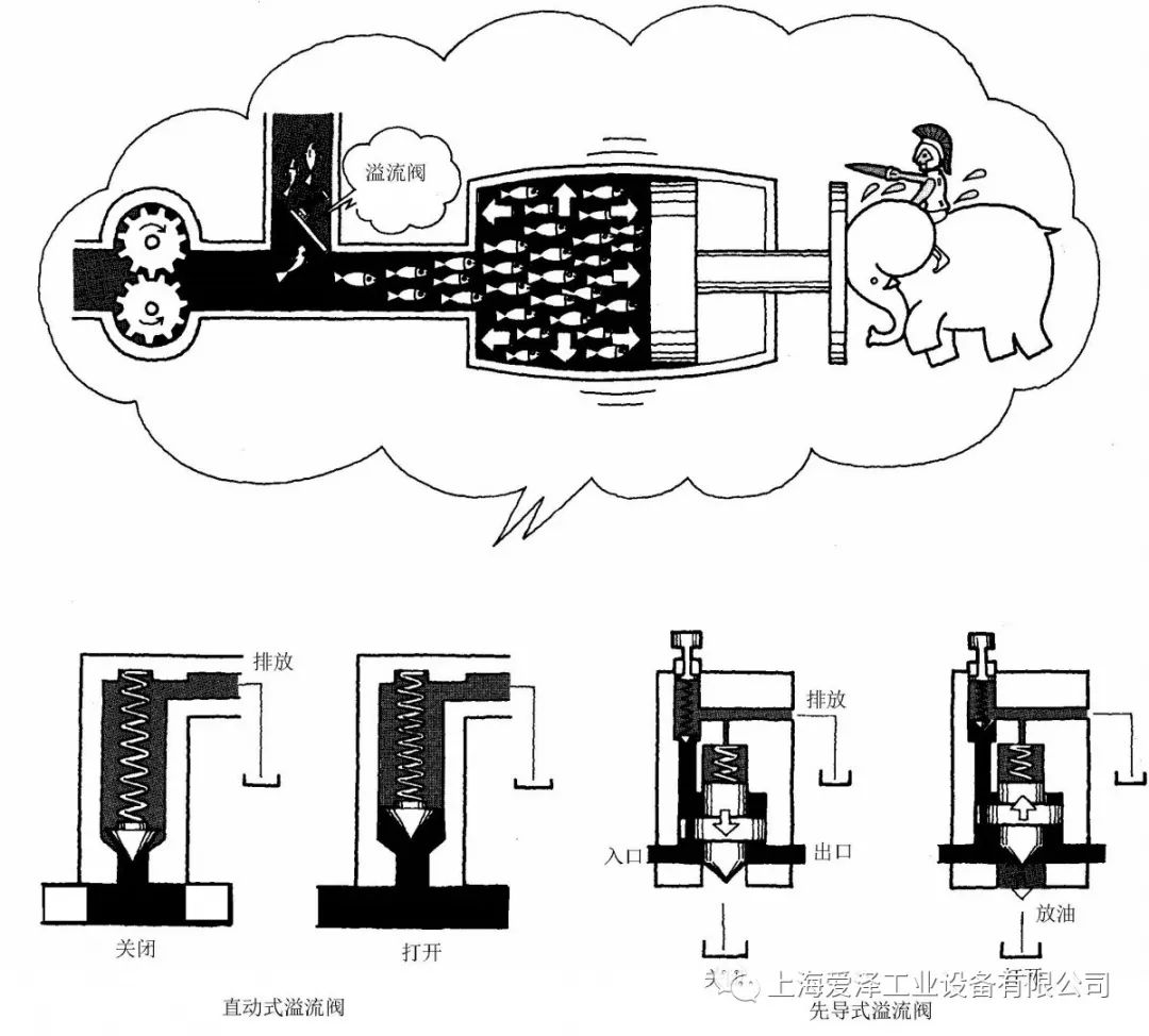 直動式溢流閥通常用于流量較小、以及非經(jīng)常性開啟的場合。先導(dǎo)式溢流閥在必須釋放大容量過量油的場合是必需的。
