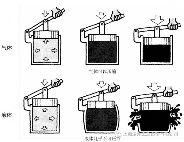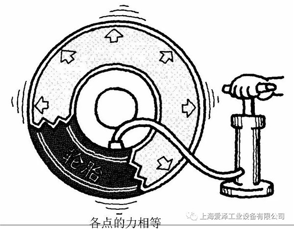 讓我們考慮一下壓力是為什么和如何形成的。流體(氣體或液體)受擠壓時會膨脹并產(chǎn)生作用力。這就是壓力。當(dāng)你把空氣注入輪胎時,則產(chǎn)生了壓力。你連續(xù)將越來越多的空氣注入輪胎,當(dāng)輪胎充滿氣體時,內(nèi)部不再需要空氣,而氣體仍不斷進(jìn)入,氣體將向外推動輪胎壁,這種推力就是壓力的一種形式。然而,空氣是一種氣體,因此它可以被壓縮。壓縮空氣以各點(diǎn)相等的力向外推動輪胎壁,當(dāng)所有流體處于壓力之下時,情況也是如此。主要差別是,氣體可作較大的壓縮,液體則只能作微量壓縮。