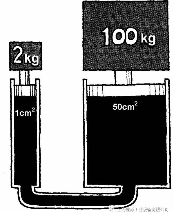 公斤/平方厘米;另一重量是100公斤,其作用面積是50平方厘米,因此它的壓力也是2公斤/平方厘米;結(jié)果是兩個重量平衡。這就是一種類型的液體杠桿。