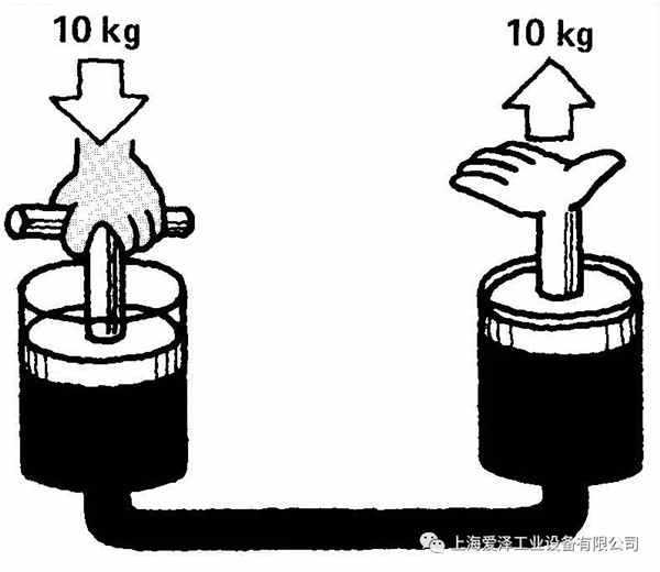 液壓杠桿中的能量傳遞務(wù)必牢記,流體在相同的作用面積上的作用力相同。在工作狀態(tài)中,這一規(guī)律對我們大有幫助。如果我們有兩只尺寸完全相同的油缸,因?yàn)槊恐换钊拿娣e相等,所以當(dāng)我們以10公斤的力向下按動一只活塞時,它使另一只活塞產(chǎn)生10公斤的上推力。如果面積不相等,則力也不相等。