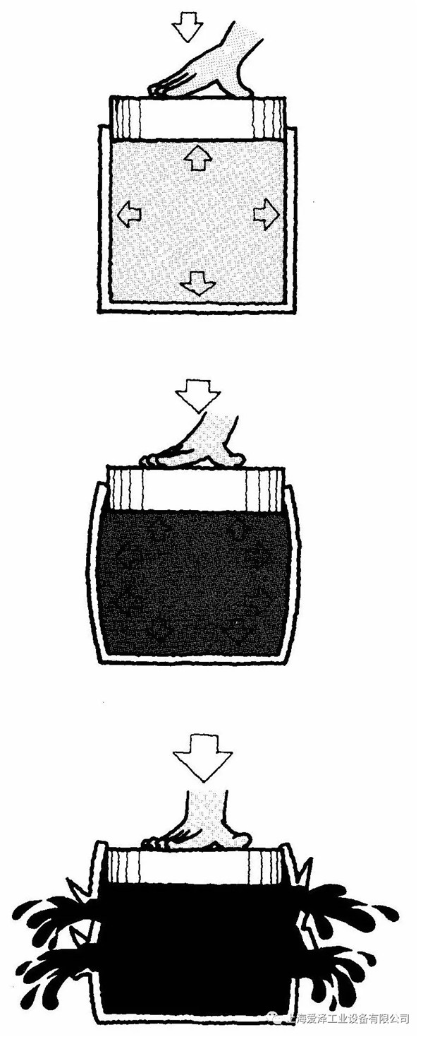 如果你按動一裝滿液體容器的塞頭,液體將止動塞頭。按動塞頭受到液體的抵抗力與容器各邊受到的力相同。如果繼續(xù)越發(fā)用力地按動塞頭,則容器會遭到破壞。