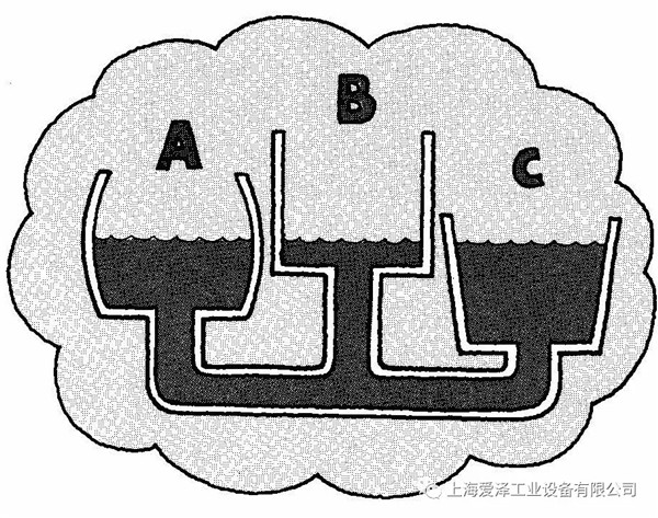 我們談到了壓力和流動,但是壓力常常在沒有流動的情況下存在。重力就是很好的例子。如果我們有如下圖所示的三個相連的不同水位的容器,重力使內(nèi)部液體處于同一水平之上。這是我們可以在液壓系統(tǒng)中利用的另一條原理。
