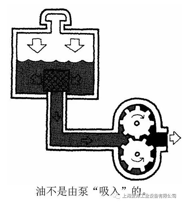 重力產(chǎn)生的壓力把油箱中的油壓入泵。油不是象許多人想像的那樣被泵“吸入”的。泵工作把油推出。通常所說的泵的吸油過程,意指重力將油推入泵。