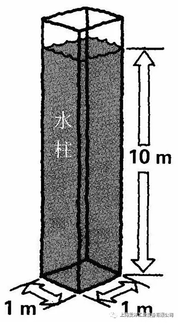壓力與深度成比例增大,我們可以精確計算任何深度的壓力。插圖中,你可以看到高度為10米的一平方米水柱。大家知道,一立方米水重量為1,000公斤。用水柱高度10米乘以這一數(shù)量,得到的總重量是10,000公斤。底部面積是一平方米。這水樣,重量分布在10,000平柱方厘米之上。如果我們把總量10,000公斤除以10,000平方厘米,我們可以發(fā)現(xiàn),這一深度的壓力是每平方厘米1公斤。