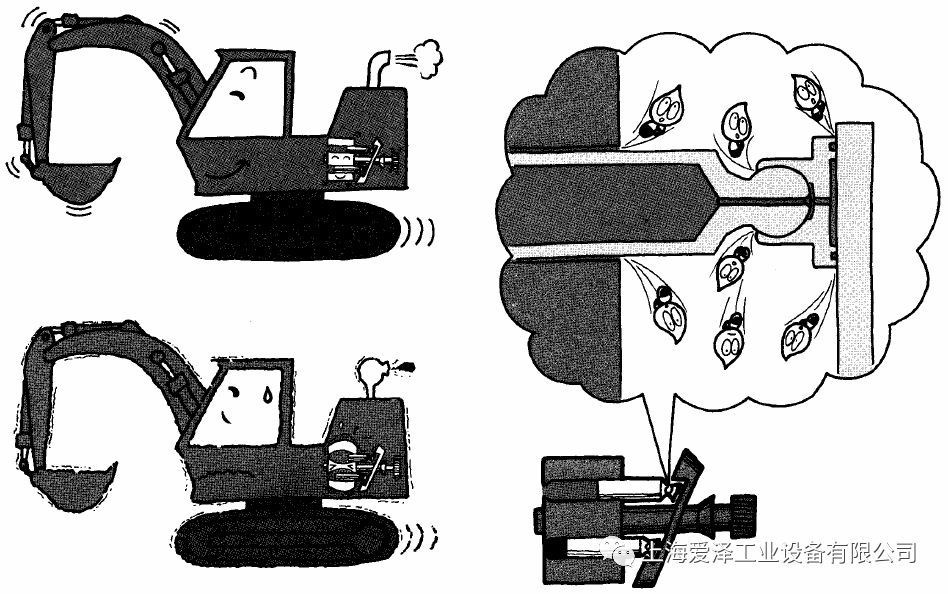 當(dāng)帶有氣泡的液壓油被帶到泵的高壓區(qū)時(shí),高壓會(huì)使氣泡崩潰。