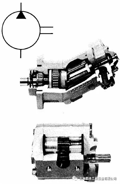 馬達(dá)符號(hào)也是畫有黑色三角的圓圏,但是三角形箭頭向內(nèi)表示,馬達(dá)是壓力能的接收元件。