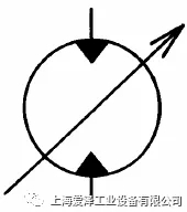 通過繪制一條以45度通過圓圈的箭頭,來表示雙向旋轉(zhuǎn)的變量馬達(dá)。