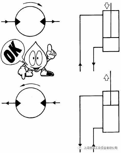 必須通過觀察執(zhí)行裝置與哪一根線條連接,以判斷執(zhí)行裝置(雙向旋轉(zhuǎn)馬達(dá)或雙作用氣缸)的油流動(dòng)方向符號(hào)中對(duì)流向未作規(guī)定。
