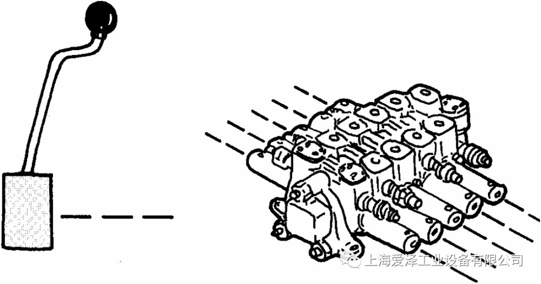 表示控制桿、踏板和機(jī)楲控制裝置或先導(dǎo)控制油路的控制方法的符號(hào)位于矩形的兩端