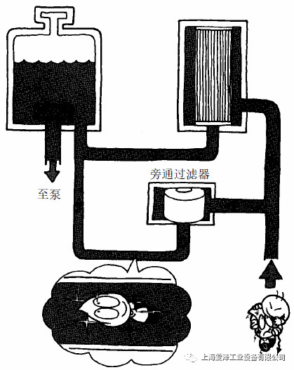 旁通過濾器系統(tǒng)的過濾器與管路中的T形管相連,這樣每一次循環(huán)中只有一小部分油通過該過濾器。