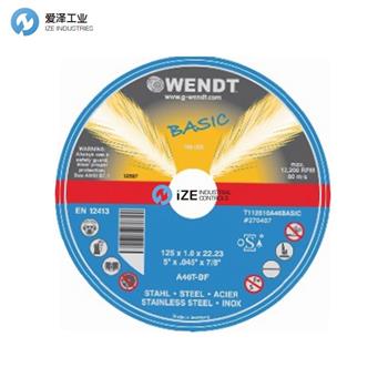 愛澤工業(yè)專業(yè)提供德國WENDT切割片A46BASIC系列 示例A46T-BF 270412 125х1.5х22.2,德國WENDT切割片, WENDT砂輪片,WENDT百葉盤,WENDT快速更換磨片,WENDT鋼紙磨片, WENDT磨卷,WENDT磨輪,WENDT磨環(huán),WENDT砂紙卷,WENDT絨卷,WENDT旋轉(zhuǎn)銼等。