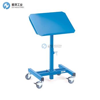 For plastic boxes, steel plate boxes, wire baskets etc., adjustable in height and mobile. Sectional steel-/ tubular construction with steel plate platform. Powder-coated blue RAL 5007. 4 swivel castors with TPE tyres, hubs with bush bearing, 2 swivel castors with wheel locks. Steel plate platform with single sided lay-on edge, inclinable by 15° und 30°, adjustable in height in intervals of 25 mm.