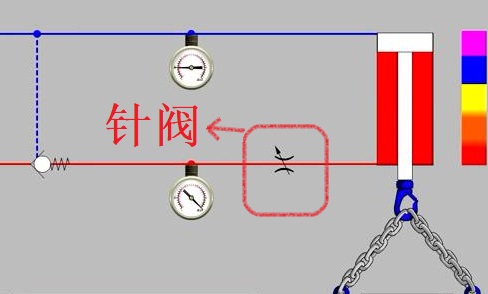 針閥對離開下缸體的油施加背壓,從而在上缸管線上產生壓力,上缸管在止回閥處保持恒定的先導壓力也是恒定的,使止回閥球離開閥座允許為了均勻流動。就解決了運動不均勻的問題,但是以氣缸速度為代價。