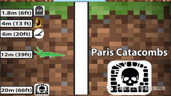 巴黎下的巴黎地下墓穴的深度,一個(gè)超過(guò)六百萬(wàn)(6,000,000)人安息的地方